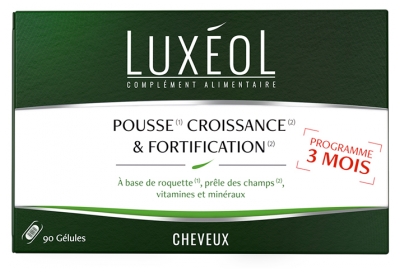Luxéol Growth & Fortification 90 Capsules is a food supplement in capsules form that promotes growth, fortification, and improves the condition of the hair.