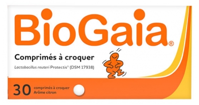 BioGaia L.Reuteri ProTectis Probiotic Lemon Flavour 30 Chewable Tablets is a dietary supplement to Limosilactobacilus (formerly Lactobacillus) reuteri Protectis® (L. reuteri DSM 17938) with sweetener.