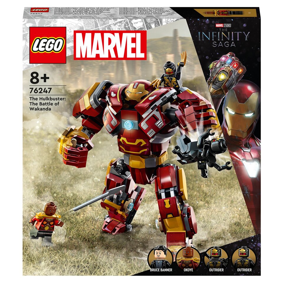 LEGO Marvel buildable toy features a Hulkbuster mech action figure that kids can use to recreate Marvel Studios’ Avengers: Infinity War actionIncludes 4 minifigures: Bruce Banner, whose head turns to reveal a Hulk ‘going green’ face, Okoye, who carries a toy spear and 2 outridersKids can move, position and pose the Hulk mech buildable toy as they play – locked knee joints provide stability for the action figure to standThe Marvel Avengers action figure also has an opening cockpit with space for kids to place the Bruce Banner minifigure in the pilot’s seatThe portable Hulkbuster mech action figure stands over 5 in. (15 cm) tall and makes a great addition to any LEGO Marvel building toy collectionPut action from Marvel Studios’ Avengers: Infinity War into kids’ hands with the highly posable LEGO Marvel The Hulkbuster: The Battle of Wakanda (76247) action figure building toy. This mega movable mech and 4 minifigures make an ideal Marvel gift for young fans aged 8 and over.Based on a scene from Marvel Studios’ Avengers: Infinity War, this versatile action figure playset features a buildable Hulkbuster mega suit, which has multiple articulations so kids can move, position and pose the mech with ease. Locked knee joints provide excellent stability, and an opening cockpit reveals space for the minifigure pilot. There are 4 minifigures included in the set: Bruce Banner, Okoye and 2 outriders. The head of the Bruce Banner minifigure rotates to show him ‘turning green’. Okoye carries a spear. For added digital fun, the LEGO Builder app features intuitive zoom and rotate tools that let kids visualise their Hulk buildable toy as they build.Encourage imaginative play with this LEGO Marvel Avengers buildable toy for kids aged 8 plus years old, with cool characters and authentic accessories that bring the iconic super heroes to life.This portable mech action figure stands over 5 in. (15 cm) tallContains 385 Pieces.